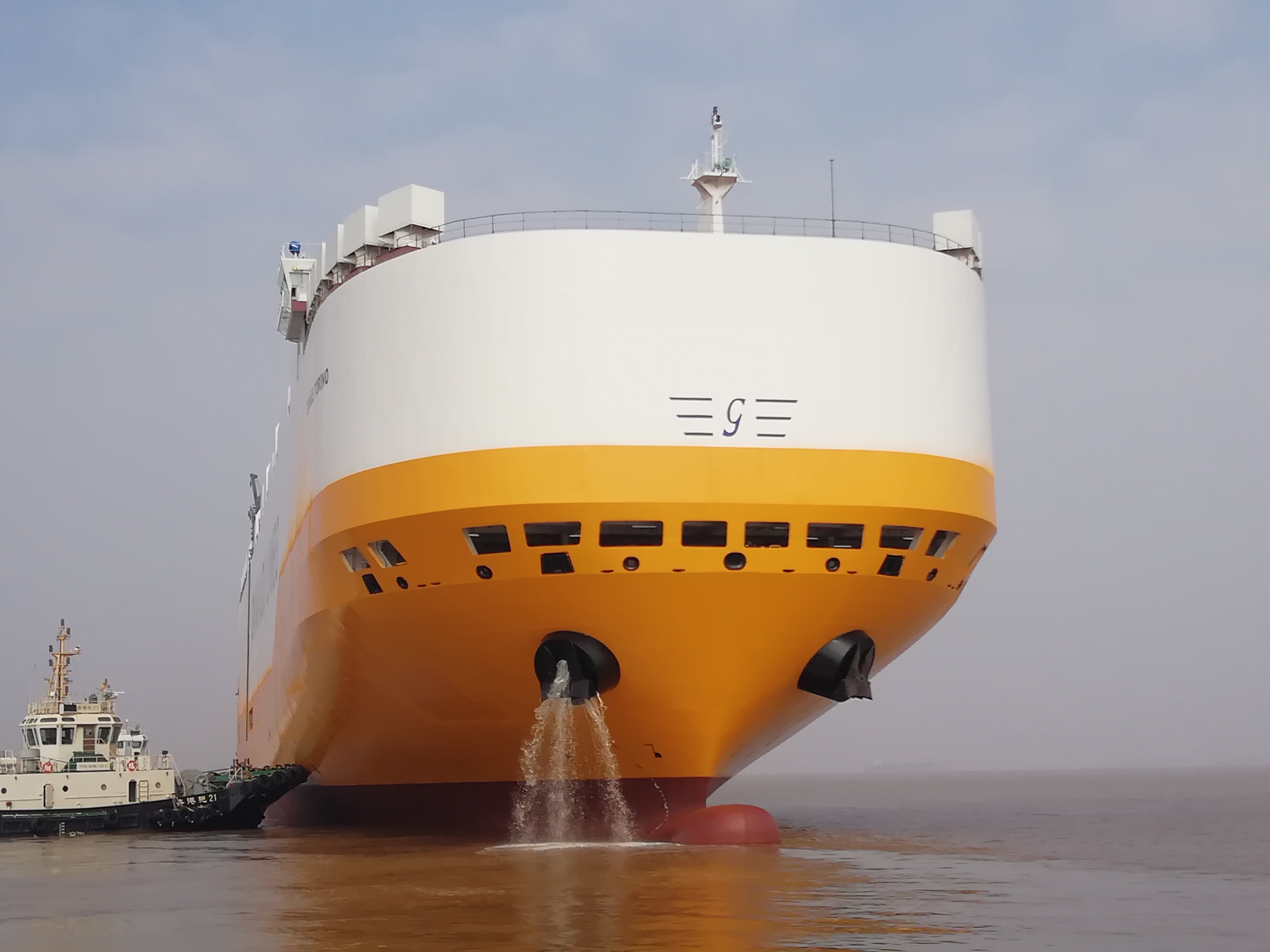 揚帆集團7800車(chē)汽車(chē)滾裝船首制船出塢