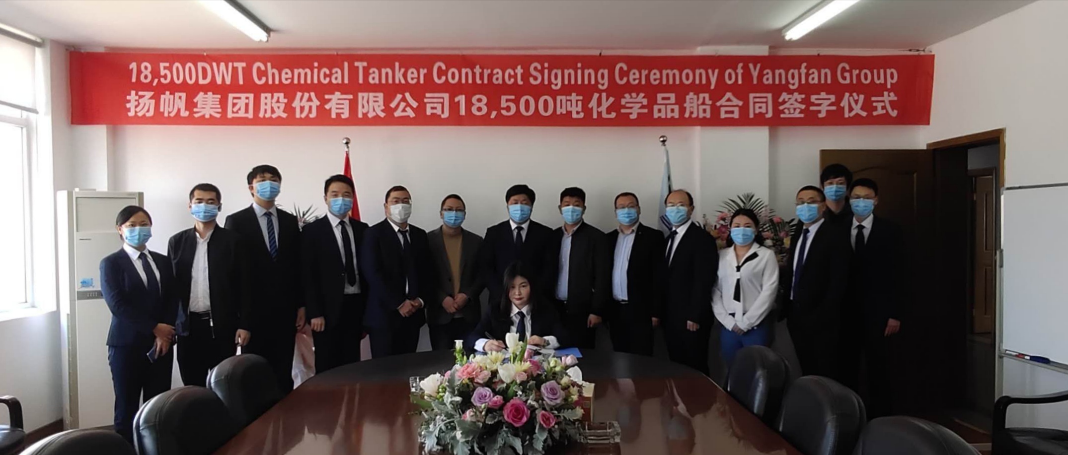 2020年4月9日,揚帆集團與一家國外船東簽署一艘18500DWT化學(xué)品船建造合同。該船型長(cháng)164.34米、寬23米、設計吃水9.55米。