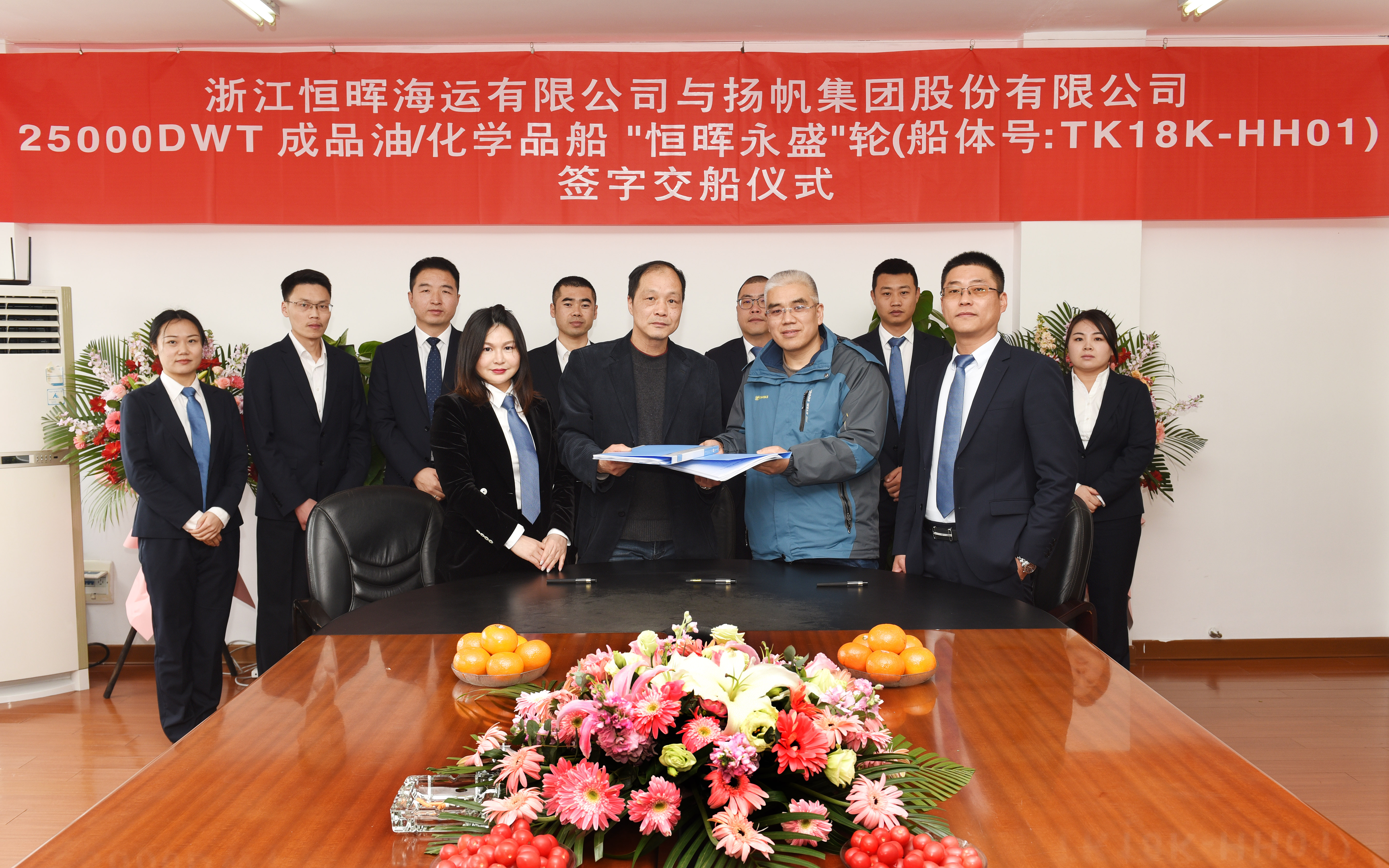 2021年3月24日,由揚帆集團股份有限公司下屬全資子公司浙江東海岸船業(yè)有限公司為國內船東浙江恒暉海運有限公司承建的1艘25000噸化學(xué)品油船“恒暉永盛”號正式簽字交付。