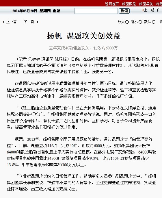 《今日普陀》2014年03月20日 揚帆課題攻關(guān)創(chuàng )效益